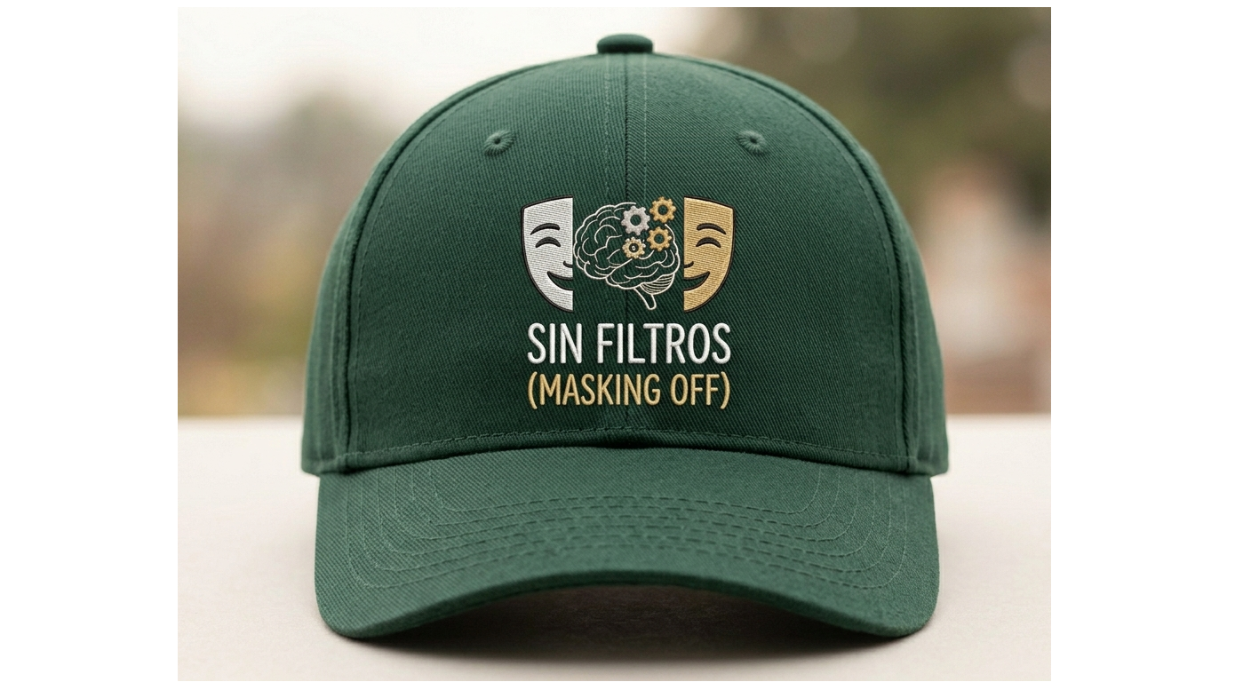 Para esos días en los que no tienes ganas de actuar como alguien «normal». Quitarse la máscara es agotador, pero necesario. Esta gorra es tu señal de autenticidad. Un diseño discreto para gente que está aprendiendo a dejar de disculparse por su intensidad, por su silencio o por su forma única de procesar el mundo.